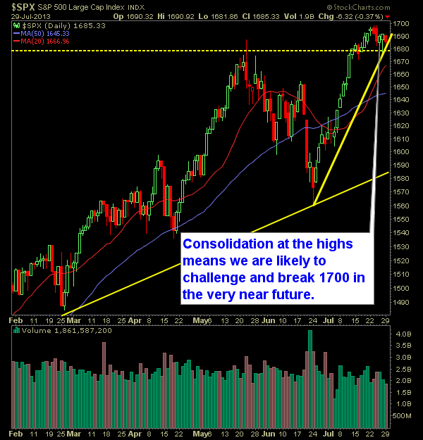 - With the consolidation at the highs, I think it is only a matter of time before we break the 1700 price level .