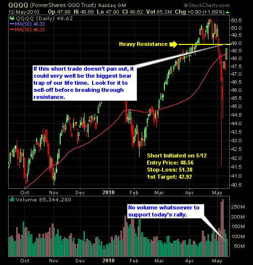 I only made one transaction today, and that was shorting the QQQQ at the market close. Cisco (CSCO) reported earnings after the bell today and the reaction was to sell the shares after hours. Let’s hope that sentiment carries into tomorrow.