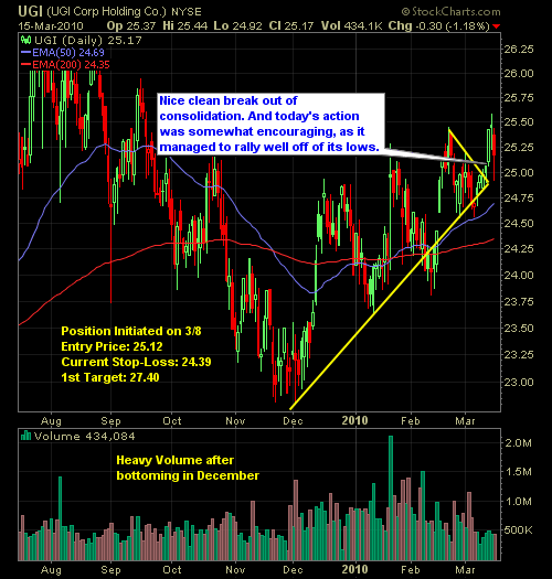 Sorry for the late night post – I promise to make it up to you tomorrow – maybe I will try for as many as 4 posts tomorrow. That is the plan anyway. Nonetheless, I wanted to give you all an update on my portfolio – which currently has Barnes & Noble (BKS) and Ugi Corp (UGI) in it. UGI gave back most of its gains today, so that I am just a shade above break-even, while BKS recovered off of the morning sell-off and finished in positive territory. I am inching my way close and closer to my 1st target price in that holding.