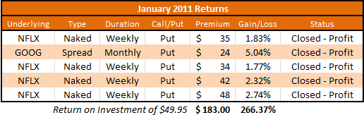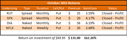 | NFLX | Single | Weekly | $ 48.00 | $ 1,752.00 | 2.74% |