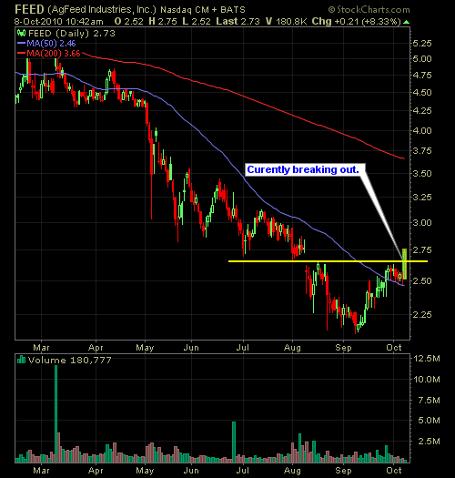 Below, I’ve provided you with four breakout charts that you may want to play. I would look to book profits in these stocks incrementally as the position increases in volume. I would also play these with a tight stop-loss.