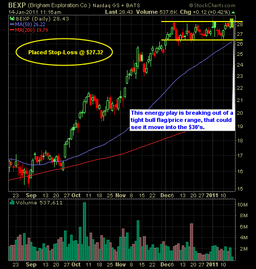 Two new trades this morning. I actually got in BB&T (BBT) at $27.47 and Brigham Exploration (BEXP) at $28.42 – both breakout plays.