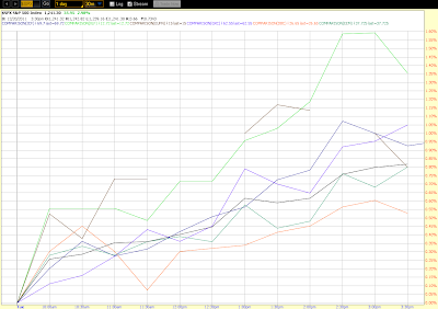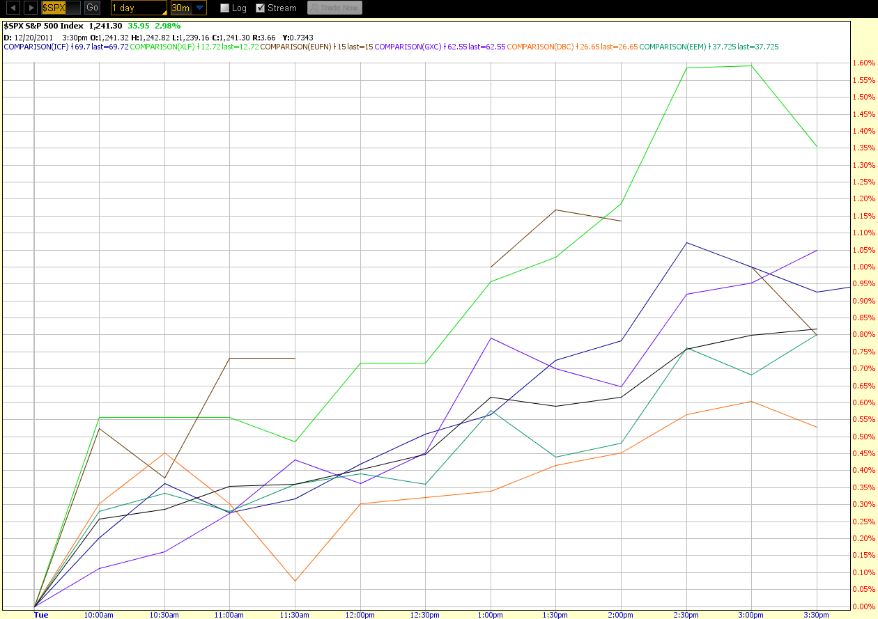 The 1-Day 30-minute percentage comparison chart below shows that, today, DBC rose the least from the market open…something I’ll watch for over the next days/weeks to see if weakness is developing in the Commodities sector…which could influence equities, as well.