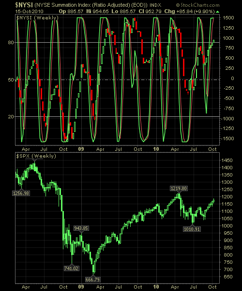 Very similar to the reading we got last week, the NYSE Reversal Indicator shows that a pullback is in the cards in the near future, but it is not quite ready to make it official. I personally look for the Green and Red lines (to keep it simple) to cross and start moving downward. However, that has yet to happen. Very good chance though we see that happen this week – especially if we see any further selling in the markets like we did yesterday. I am still unhedged in my portfolio, but nowhere near as committed as I was earlier last week (at one point I was about 116% long). Apple (AAPL) reports on Monday, and if they disappoint, I don’t doubt one bit that we’ll see sustained selling hit the markets.