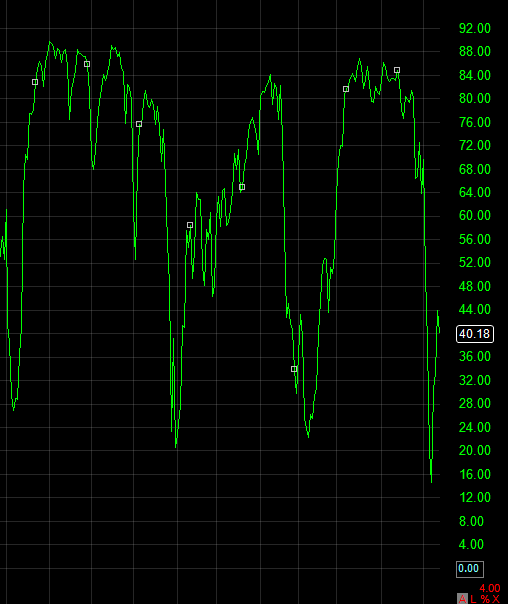 The week is almost over, and as you can clearly see the T2108 got a nice bounce from the market’s action on Monday and Wednesday. I’m short to the gills right now, so I’m looking for tomorrow to continue with what we saw this afternoon in the markets – and that is more and more selling.