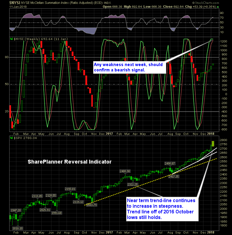 It’s Day 3 of 2018, and the market is still pumped about it’s prospects for finishing higher. The SharePlanner Reversal Indicator suggests that there is more upside to this market, though it does seem we are closer to a near-term top, than we are a bottom.Â