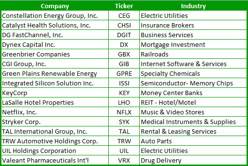 Today I’m providing a very contrarian stock screen in respect to the market action we are seeing today. As I’ve mentioned numerous times throughout today, I am a bit concerned that the market is going to have a difficult time in holding these gains, considering how over extended in just one day that we are.
