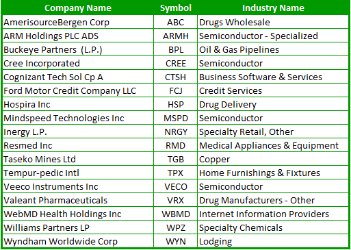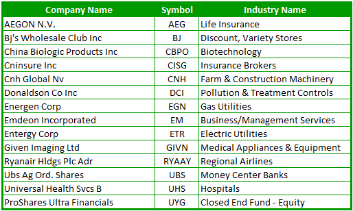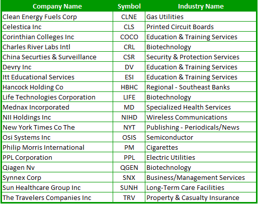 Below is a list of 11 potential takeover targets based on value and the ability to acquire the company. I didn’t put a limit on the size of the company, so there are some ‘Gigantors’ in the list below, but nothing like a Wal-Mart or Microsoft or anything close to it. All of the companies