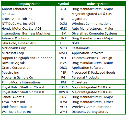 If you are looking for some conservative plays out there, thinking that there are pending storms on the horizon in the economy, I would look no further than the list below. I’ve run a screen to find those stocks least affected by the markets mood’s and emotions, and are to be considered the best of