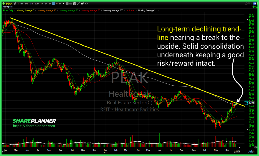 $PEAK long-term declining trend-line nearing a break to the upside. Solid consolidation underneath keeping a good risk/reward intact.