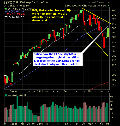 I allocated some more of my portfolio to SPY on the pop that we are seeing this morning at $129.81. Between 1300 and 1302 there is a lot of technical resistance that should cause some headaches for the bulls to push through. On the Fibonacci retracements we’ve seen the the S&P give back +50%
