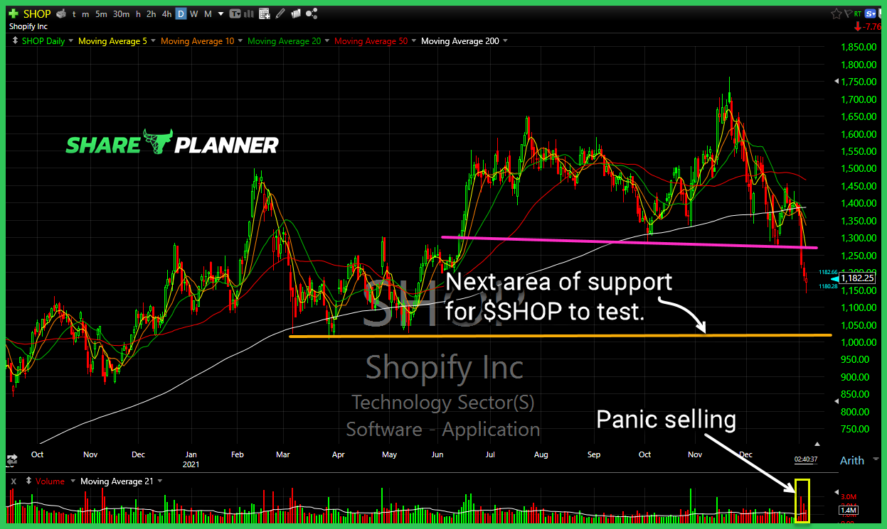 $SHOP continues to get routed, could see a test of the 1000’s before finding support.