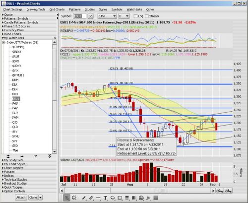 I'm 95% cash for the weekend, and expect to get short on Tuesday. This is assuming, of course, that hurricane Katia (I pronounce it kuh-TEE-uh) doesn't wash over Central Florida and knock out my power. It was almost funny to hear the Northerners complain about losing power for a few days in the summertime. They